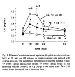 - ↑ Kalra SP, Pearson E, Sahu A, Kalra PS. Agmatine, a novel hypothalamic amine, stimulates pituitary luteinizing hormone release in vivo and hypothalamic luteinizing hormone-releasing hormone release in vitro. Neurosci Lett. 1995 Jul 21;194(3):165-8.