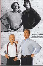 Правда, уже который раз встреча друзей начинается с громкой команды «Занять периметр!» В ответ из колонны губернаторских авто горохом сыпятся здоровяки в черных отутюженных черных костюмах с оттопыренными подмышками. Они не могут изменить долгу даже в резиденции Джо Уайдера. Согласно закону, губернатор Калифорнии - фигура государственного значения, а потому всякий раз первой на сцену выходит многочисленная служба безопасности. Разговоры о том, что Арнольду предстоят безобидные съемки, тренированные парни пропускают мимо ушей. Первым делом начинается кропотливый осмотр кабинета Джо Уайдера и уже расставленной фотоаппаратуры.