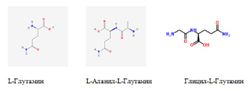 Химическая структура L-Глутамина и двух основных его дипептидов представлена ниже: