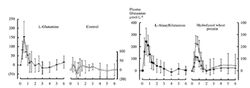 C.R.Harris и соавторы (2012) сравнили динамику концентрации L-Глутамина в плазме крови у человека после перорального однократного введения L-Глутамина в виде свободной аминокислоты и в виде эквивалентного по дозе Глутамина дипептида L-Аланил-L-Глутамина (АГ) (рис.2).