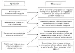Как было указано ранее, основные положения включают общие принципы, которые могут помочь в лучшем понимании блокового подхода к структуре подготовки при направленности тренировочной программы на развитие многих целевых способностей (рис. 3).