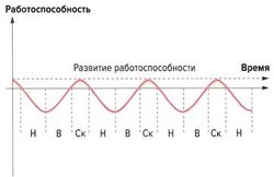 На Рис. 2 изображена модель суперкомпенсации. Тренировки в соответствии с этим графиком должны быть возобновлены тогда, когда процесс регенерации достигнет уровня выше исходного, наблюдавшегося до начала тренировок, т. е. непосредственно во время суперкомпенсации.