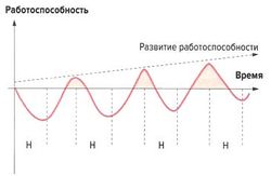 Этот важный подход, заключающийся в планировании отдыха в качестве рабочей единицы, основывается прежде всего на способности организма к адаптации. Соответствующая нагрузка в виде регулярных тренировок оказывает влияние на нервно-мышечную систему и систему энергетического обмена, что приводит к дефициту их функциональности. Организм видоизменяет свои функциональные системы так, что постепенно изменяется характер функционирования нервно-мышечной системы и увеличивается объем энергетического потенциала[2]. Такое изменение действия функциональных систем организма происходит преимущественно в периоды отдыха, когда говорят об «избыточной регенерации», так называемой суперкомпенсации[3].