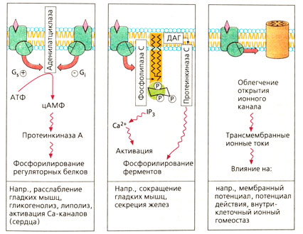 Системы вторичных мессенджеров, связанных с G-белками.[править | править код]