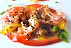 Слегка замороженную рыбу порезать на длинные тонкие кусочки. Из остальных ингредиентов приготовить маринад и обильно полить им рыбу. Подавать на тарелке, украшенной дольками лимона.