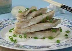 Разделка рыбы на филе Для получения филе с кожей, реберными и позвоночной костями рыбу очищают от чешуи, удаляют плавники, голову, разрезают брюшко и вынимают внутренности, затем промывают и обсушивают. После этого, начиная с головы, срезают верхнее филе, ведя нож параллельно позвоночнику. В результате такого пластования получают два филе: с кожей и реберными костями (верхнее) и с кожей, реберными и позвоночной костями (нижнее).