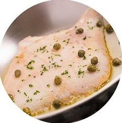 Выложить филе морского языка на блюдо, которое может быть использовано в микроволновой печи. В другой тарелке смешать мелко порезанный помидор с чесноком, каперсами и измельченным базиликом. Полить рыбу полученным томатным соусом. Выпекать 2-3 минуты в микроволновой печи на максимальной мощности.