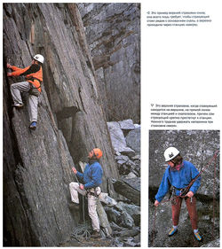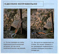- В данном случае петля заброшена на большой выступ. Страховка будет улучшена, если петлю пристегнуть к беседке страхующего и управлять страховкой в показанном здесь положении.