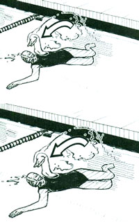 - На последнем гребке опустите руку ниже, чтобы было удобнее совершить кувырок.