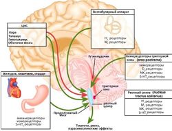 Что касается раздражения блуждающего нерва, растущим уровнем лакта в крови, как и раздражения близлежащей area postrema (я писал об этой зоне выше; если кому интересно картинки про блуждающий нерв и area postrema, можно поглядеть тут), то: