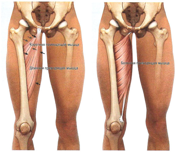Приводящие мышцы (длинная, короткая и большая приводящие мышцы)