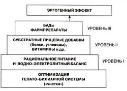 Рис. 3. Уровни организации и структура эргогенного спортивного питания -пирамида спортивного питания