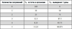 Проще говоря, полувыведение отражает концентрацию препарата в крови, а полуабсорбция говорит об оставшемся количестве этого препарата в организме. Пример: после инъекции нандролона деканоата 100 мг концентрация препарата упадет вдвое через 7 дней, еще через 7 дней вчетверо и т.д., при этом 50% препарата будет разрушено только через 14-15 дней. Формально, действие препарата заканчивается через 4 периода полувыведения, когда остается примерно 5%-концентрация.