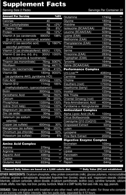 В состав данного комплекса включены все незаменимые аминокислоты, однако дозировки крайне низкие (например, BCAA всего 1 г). В достаточном количестве присутствует лишь аргинин, преимущества которого в бодибилдинге были опровергнуты исследованиями.