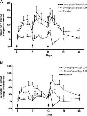 - ↑ Falutz, J et al. "A placebo-controlled, dose-ranging study of a growth hormone releasing factor in HIV-infected patients with abdominal fat accumulation." AIDS. 2005 August 12;19(12):1279-87.