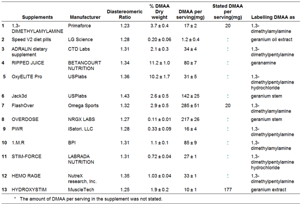 - ↑ Anonymous. What to do about DMAA? Nutr. Bus. J. 2012, 17, 1.