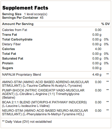 Napalm представляет собой уникальную формулу, состоящую из уникально сбалансированных ингредиентов, которые работают синергетически на межклеточном уровне, высвобождая энергию, что в свою очередь увеличивает Вашу производительность и приводит к невероятным результатам.