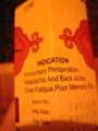 Показания к применению: (по информации с упаковки) непроизвольная потливость, боль в спине, плохая память, усталость и др.