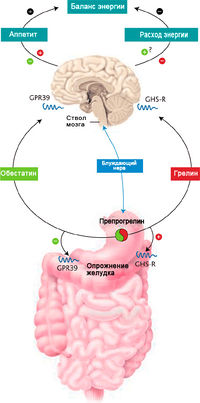 - ↑ Zhang N. et al. Meta-analysis of the relationship between obestatin and ghrelin levels and the ghrelin/obestatin ratio with respect to obesity //The American journal of the medical sciences. – 2011. – Т. 341. – №. 1. – С. 48-55. http://www.ncbi.nlm.nih.gov/pubmed/21139496