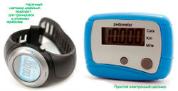 Датчик — акселерометр фиксирует отрицательное ускорение тела при соприкосновении ступни с землей и записывает факт совершения шага. Если известна длина шага и число шагов, несложно рассчитать пройденное расстояние и количество потерянных калорий. Функция шагомера может быть встроена в мобильные устройства (телефоны, смартфоны), часы. Можно также определить пройденное расстояние, если с вами есть GPS, например в мобильном телефоне.