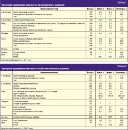 Химический состав. Белков 80 г, жиров 40—60, углеводов 200 г. Свободной жидкости 1,5—2 л, поваренной соли 8—10 г.