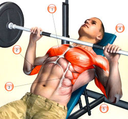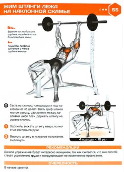 Жим штанги на скамье с наклоном вверх[править | править код]