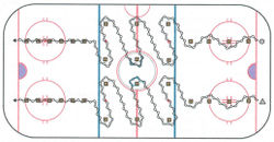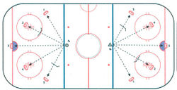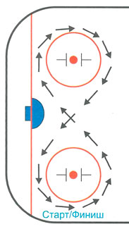 Тест направлен на оценку техники бега на коньках лицом и спиной вперёд, перемещений приставным шагом и поперечным скольжением, а также способности к быстрой смене направлений движений в их комплексном проявлении. Методика рекомендована федерацией хоккея Канады[44].