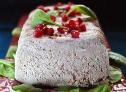 Поджарить печень на слегка смазанной маслом сковородке с антипригарным покрытием. Разбавить малиновым уксусом сок, который образовался во время жарки. Приправить солью и перцем. Листья эстрагона, печень и творог пропустить через блендер. Полученное пюре выложить в формочки. Оставить в прохладном месте на 24 часа.