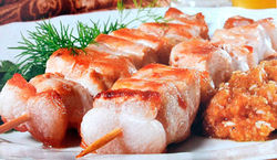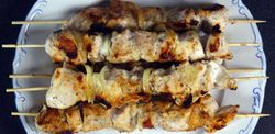 Кусочки филе замаринуйте в этой смеси на 2 часа. Затем нанижите их на шампуры и жарьте на масле по 3-4 минуты с каждой стороны.