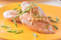 Маринованное филе обсушите, выложите на решетку пароварки, посыпьте имбирем и варите на пару 30-40 минут.