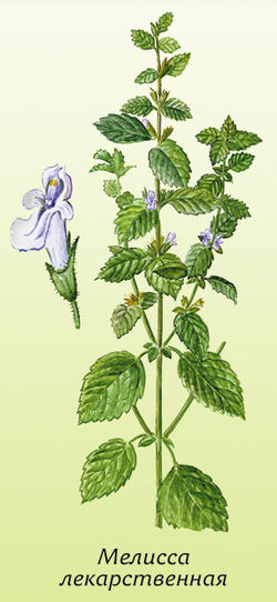 Мелисса лекарственная (Melissa officinalis L.). В качестве успокаивающего и сердечного средства используют листья и побеги мелиссы, они содержат эфирные масла (до 20 %), витамин С, дубильные вещества, органические кислоты.