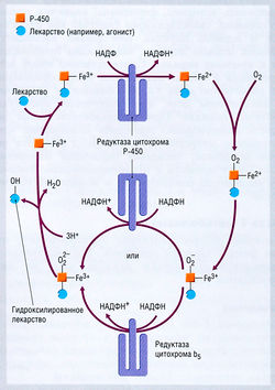 В большинстве случаев окисление лекарств катализируют цитохромы Р-450, хотя в этом процессе, но в меньшей степени, участвуют и другие ферменты. Существует несколько сотен изоформ цитохромов Р-450. Некоторые из них являются конститутивными (т.е. присутствуют всегда), другие начинают синтезироваться лишь в ответ на соответствующие стимулы — обычно экзогенные химические вещества. Специфичность по отношению к субстрату — это функция изоформы цитохрома Р-450, и она обычно не абсолютная, а относительная, поэтому отсутствие какой-либо определенной изоформы цитохрома Р-450 не останавливает данную метаболическую реакцию. Гены суперсемейства цитохрома Р-450 картируются в нескольких хромосомах.