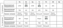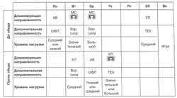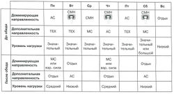 - во-вторых, графическое представление микроцикла может использоваться с дидактическими целями: спортсмены могут более осознанно воспринимать требования тренировочного процесса, так как будут лучше понимать важность ключевых тренировок и предвосхищать возможность восстановления после напряжённых пиковых нагрузок;