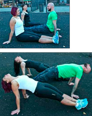 Разобравшись с неполным мостиком, можно двигаться дальше и начать практиковать мостик прямой. На этот раз необходимо сесть на землю, вытянув сведенные вместе ноги пред собой (так же, как это делается для наклонов вперед). Разница заключается в том, что руки будет необходимо упереть в землю рядом с бедрами. Теперь поднимитесь и выпрямитесь за счет ахилловых сухожилий, ягодичных и спинных мышц. Закиньте голову назад и выпятите грудь, стараясь смотреть в направлении позади себя. В итоге должна получиться этакая обратная планка, которая обеспечит хорошее растяжение грудного и плечевого отделов. Даже освоив полноценный мостик, нс стоит забывать об этом великолепном упражнении, способном приносить вам пользу еще очень долго.