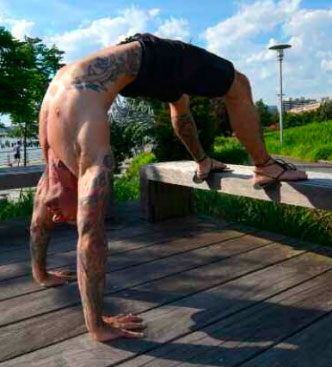 Самым недооцененным упражнением в фитнесе является мостик. Но поверьте, практиковать его крайне необходимо — это своего рода «противовес» естественной, ежедневной позе, при которой спина немного наклонена вперед (наверняка вы и сейчас находитесь как раз в таком положении). Да к тому же оно является превосходным введением в мир вертикальных стоек. Конечно, при этих словах на ум приходят скорее такие упражнения, как стойки на голове и руках, однако вертикальной стойкой считается любое упражнение, в котором сердце оказывается выше головы. Мостик — хорошая подготовка к выполнению полноценных вертикальных стоек, при которых ноги оказываются в воздухе. Почему? Да потому, что вам кажется, будто бы вы стоите на голове. Однако в отличие от большинства полноценных вертикальных стоек, мостик великолепно подходит для укрепления мышц спины, ягодиц, ахилловых сухожилий и икр. Для выполнения мостика необходимо выгнуться назад, опираясь как на ноги, так и на руки. При этом бедра оказываются высоко в воздухе.