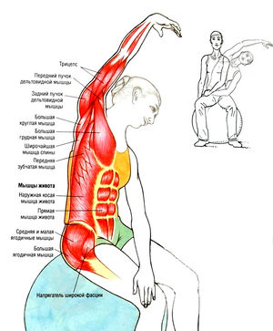 Главные мышцы при наклонах в сторону сидя на гимнастическом мяче