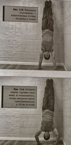 Неполные отжимания в стойке на руках у cтeны[править | править код]
