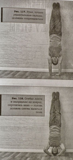 - Отжимания в стойке на руках могут выполняться с опорой на стенку или без опоры. Упражнения без поддержки направлены как на развитие силы, так и на удержание равновесия. Так как моя система в основном нацелена на развитие мышечной массы и силы, то предпочтение отдается упражнениям с опорой на стену. Если вы непременно хотите научиться делать вариант без поддержки, необходимо для начала тщательно проработать все упражнения с опорой на стену, которые подготовят мышцы к выполнению более сложных вариантов.
