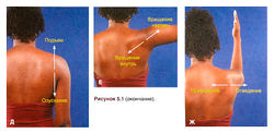 Рисунок 5.1 (окончание).Объем движений лопатки. Д. Подъем и опускание. Е. Вращение наружу и внутрь. Ж. Отведение и приведение.