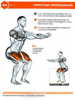 Сгибание в тазобедренном суставе включает в работу большую ягодичную мышцу, расположенную выше малую ягодичную мышцу и среднюю ягодичную мышцу. В работу также включается более дюжины мелких мышц, таких как напрягателъ широкой фасции бедра и грушевидная мышца. Известно, что сила цепи определяется прочностью самого слабого звена, — так вот, это верно и для мышц тазового пояса. Несмотря на то что тазовые мышцы достаточно мелкие, они играют существенную роль в мышечной системе. При выполнении приседания происходит движение вперед, при котором мышцы, крепящиеся к позвоночнику, и мышцы пресса получают свою долю нагрузки и, что особенно важно, тренируются мышцы поясницы. В глубоких приседаниях укрепляются прямая и поперечные мышцы живота, служащие мышечным корсетом для внутренних органов, которые сжимаются во время упражнения, — получается своеобразный массаж внутренних органов.