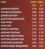 Росто-весовые показатели некоторых атлетов[править | править код]