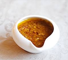 Сварить кукурузный крахмал в воде, остудить. Добавить яичный желток, уксус, горчицу, зелень, соль и перец. Если соус кажется слишком густым, добавить уксус.