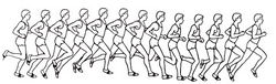 В беге руки и ноги выполняют согласованные перекрестные движения. Встречные перекрестные движения осей таза и плеч позволяют сохранить равновесие и противодействуют боковому развороту тела бегуна. Эффективная техника бега представлена на Рис. 3.