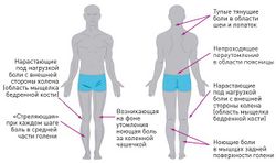 Тот же механизм формирует другую «популярную» проблему: боль на внешней стороне колена, именуемую синдром трения ПБТ (подвздошно-большеберцового тракта) (он же илиотибиальный синдром; он же ITB-синдром; он же в некоторых источниках именуется «коленом бегуна»). В этот список также попадут различные боли в области голени, тазобедренного сустава, поясничного отдела и даже в верхней части спины.