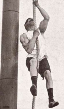 Еще одним хорошим комплексным движением для бицепсов (а также предплечий) является лазание по канату. Как и другие упражнения с собственным весом, его можно выполнять последовательно. Для начала используйте и руки, и ноги, затем используйте руки и ноги только для того, чтобы залезть на канат, а спускайтесь только на руках и, наконец, поднимайтесь только с помощью рук. Силачи старой школы часто залезали на канат из положения сидя и в такой позе выполняли упражнение от начала до конца. Это, возможно, уровень мастера для лазания по канату. Однако есть и другие варианты. «Шотландский Геракл» Уильям Банкир в XIX веке накачал самые большие в мире бицепсы, только лазая по канату. Он, правда, использовал невероятно продвинутую технику: цеплялся за канат диагонально (под углом 45°) и поднимался по нему задом наперед, используя при этом только силу рук. Попробуйте сделать это, если уверены, что у вас есть порох в пороховницах. Лазание по канату — само по себе настоящая наука в тренировке с собственным весом, и оно заслуживает более пристального внимания.