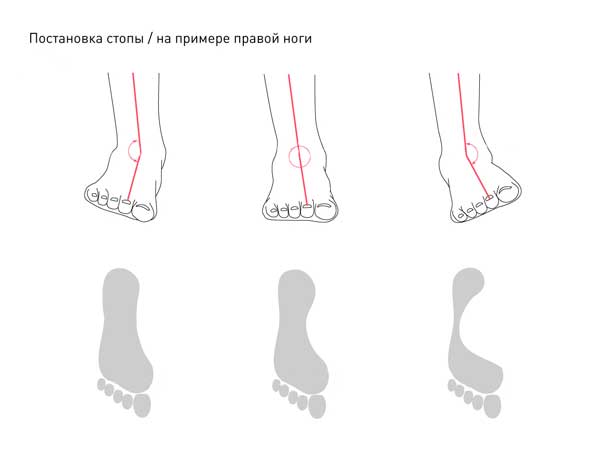 Варианты постановки стопы на примере правой ноги