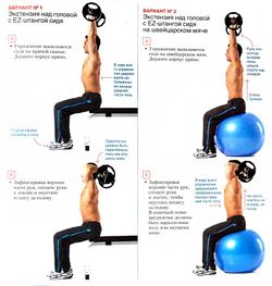 разгибание рук с изогнутым грифом штанги из-за головы