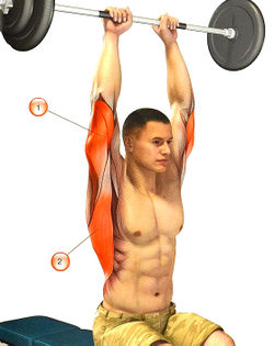 При выполнении французского жима сидя основная нагрузка приходится на трицепс.