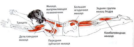 В этой позе порой нелегко бывает поднять руки, если для разгибания позвоночника используется широчайшая мышца спины (а не более глубокие мышцы).