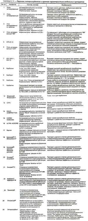 Краткая характеристика некоторых энтеросорбентов[править | править код]